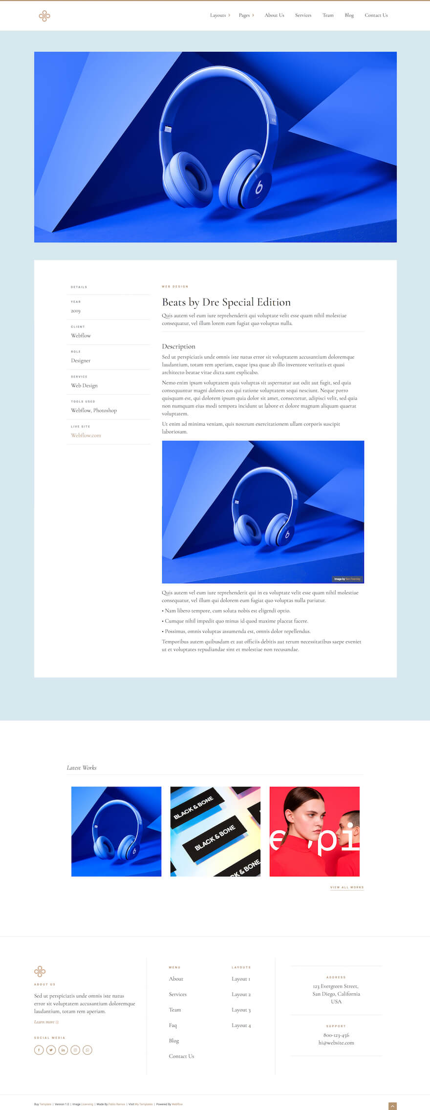 Proteus is a Webflow CMS Business template. Featuring an elegant, wide and clean design you will be available to showcase your services as well as your portfolio.